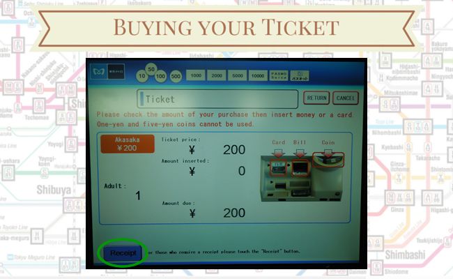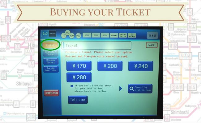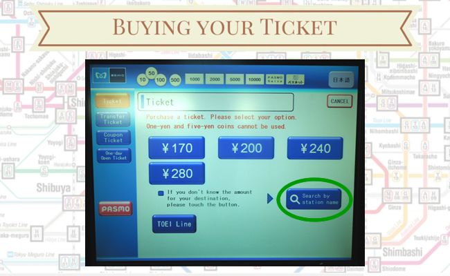 Tokyo by Subway – Part 2 December 16, 2014March 27, 2016 Fabiano Maciel Business Travel, Experiences, Tokyo Metro, Train Travel Part 2: Buying your ticket Welcome to Tokyo by Subway Series. Today we will go over the process of buying tickets for your ride when travelling on Tokyo Subway. Once you know where you are going to and which lines or systems you are using, it is easy to buy a ticket for your Tokyo Subway ride. All stations will have touch-screen machines where you can buy your ticket. In some bigger stations, such as JR Stations, you can find ‘Ticket Offices’ that will also sell tickets. Tokyo Metro Station – Courtesy of Tokyo Metro Here is a step by step guide on how to use the machines to buy your ticket. In the main screen, press ‘English’. Some machines will display a language selection button where you can find ‘English’. Other languages are available for selection, as well. Once you select your preferred language, all instructions will be displayed in that language. Language Selection Select ‘Ticket’. If you are transferring to a Toei Line or to the JR Line, you can also select the appropriate button. For this post we will select ‘Tokyo Metro’ only. Ticket Selection The machine will display the amounts available for payment. The fare is calculated based on the distance of your Tokyo Subway trip. If you don’t know how much to pay, the easiest way is to ‘Search by station name’. The fare will be automatically calculated then. Search by Station Name By selecting ‘Search by station name’, the screen will display the alphabet letters, as you can see below. Alphabet Selection As you start typing the name of the station, a list of suggested names will show up. Select the appropriate station name. If you cannot find the name of the station you are looking for: check the spelling or if station is part of a different system (perhaps you selected Tokyo Metro only and the station is part of Toei Line or JR Line). Station Name Selection Verify the total amount for the ride on the screen and insert the cash: bills or coins. At this point, you can also select the option ‘Receipt’, if you want a receipt for your records or for reimbursement purposes. You must select ‘Receipt’ right after you insert the cash. Amount Confirmation & Receipt Selection The machine will dispense the change (if any) and your ticket. Dispensing Ticket Collect your ticket and wait a few more seconds for your receipt to be dispensed. Dispensing Receipt Important tip: If you are planning to use the subway more than five times in a day, it is worth buying a Day Pass. Tokyo Metro’s Day Passes are available for JPY 710.00 (around CAD$ 7.00). You can get Tokyo Metro + Toei Lines’ Day Pass for JPY 1,000.00 (around CAD$ 10). Other combinations are also available. Click here to find the list. With your ticket in hand, it is time to start your journey. Look for the ticket gates. Some ticket gates only operate with transportation cards, so look for the ones with ticket slots. Insert your ticket in one end, go through the gate and collect the ticket in the other end. Important: Do not forget to pick up your ticket. Without it you won’t be able to leave the station at your final destination. If you use this method, you will pay the exact amount to go from station A to station B. If for whatever reason your itinerary changes, and you need to leave in a different station, there could be a difference in the amount you paid and how much your ride actually costed. In that case, before going through the ticket gates, you might need to pay (or collect) the difference of the fare. You will find ‘Fare Adjustment’ machines close to the ticket gates. Insert your ticket in this machine and the difference will be automatically calculated. After paying (r collecting) the difference, use the new ticket dispensed by the machine to go through the gates. Fare Adjustment Next week we will explore stations, platforms, how to move around and transfer from one line to another. Hope you have enjoyed this week’s post. Thank you for visiting and see you soon. Related Posts: – Doing Business in Tokyo by Subway– Tokyo by Subway – Part 1– Tokyo by Subway – Part 2 – Tokyo by Subway – Part 3– Tokyo by Subway – Part 4
