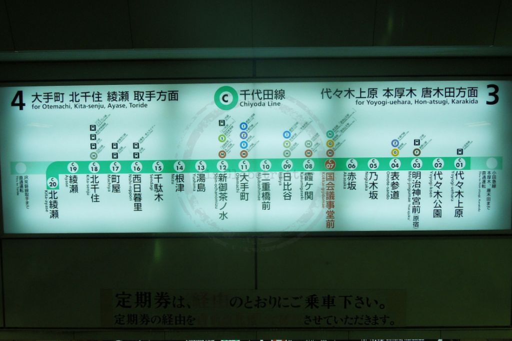 Information Board – Chiyoda Line at Kokkai-Gijidomae Station